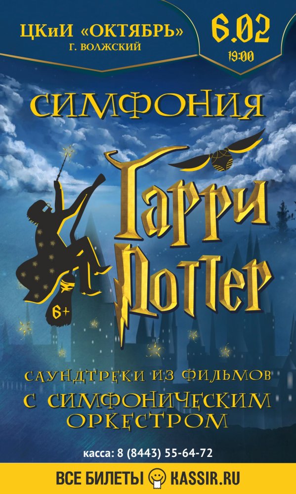 6 февраля 2026г. 19:00 Концерт «Симфония Гарри Поттер» — это уникальный и захватывающий опыт, сочетающий магию кино с чарующей силой живой музыки. Воплощённый в кино мировой литературный бестселлер конца девяностых до сих пор завораживает сердца и увлекает умы людей по всему миру.